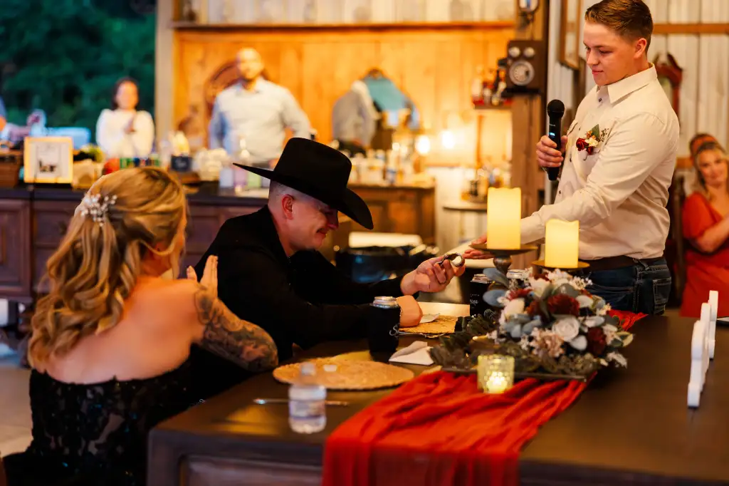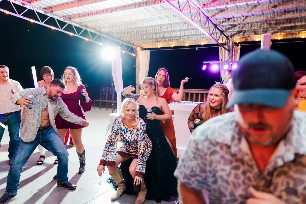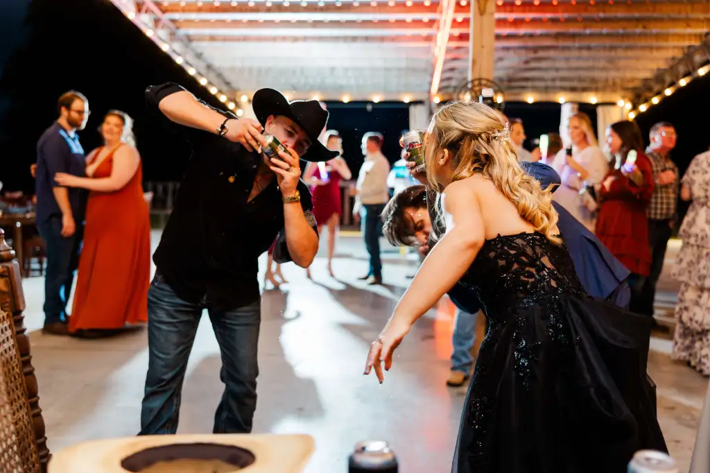 Instead of a candle-lighting or sand ceremony, these two took a shot together as their unity moment (how perfect is that?). Later, they made their grand entrance into the reception by shotgunning beers, setting the tone for one of the most energetic and laughter-filled receptions I’ve ever photographed.